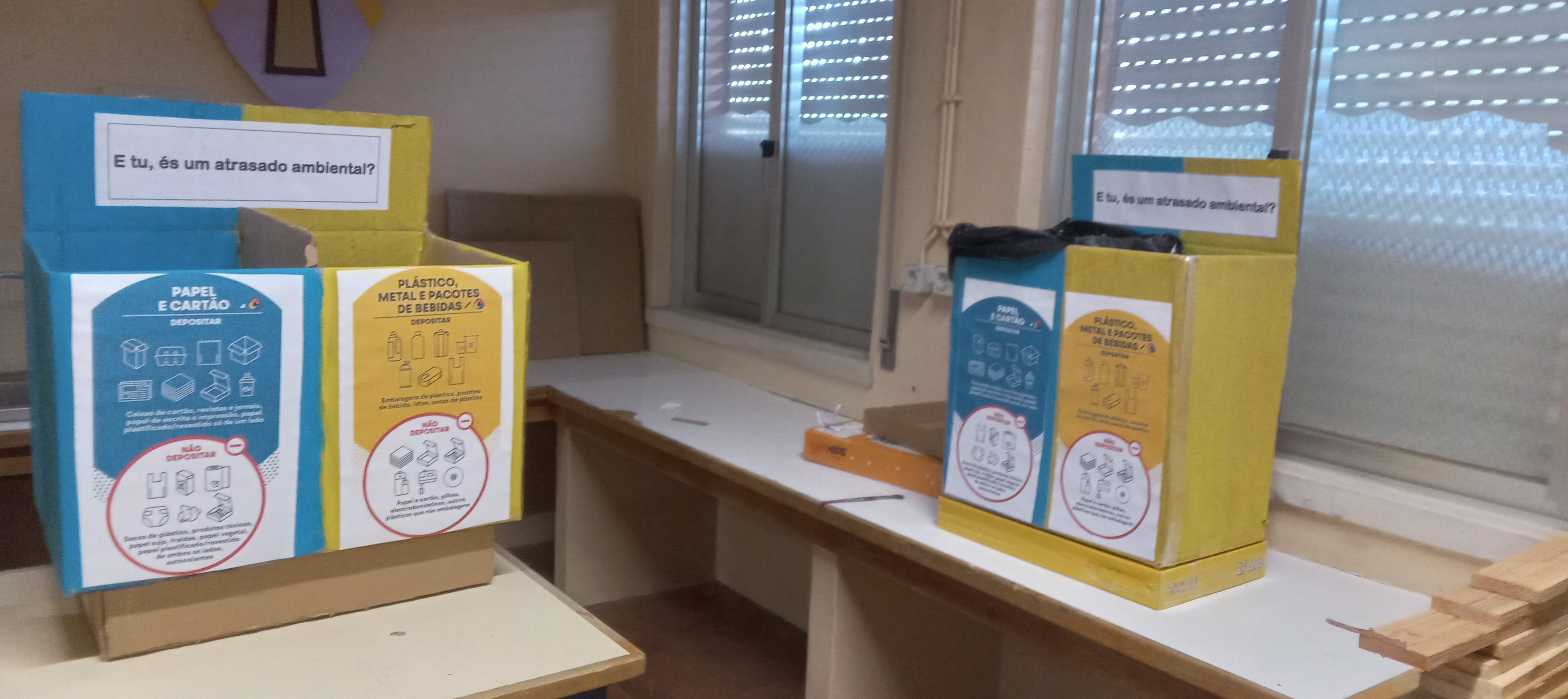 Os ecopontos foram criados a partir de caixas de papel reutilizadas, demonstrando que é possível aliar criatividade à consciência ambiental. Após a sua construção, os alunos distribuíram-nos por vários espaços da escola, facilitando o acesso de toda a comunidade escolar à separação correta dos resíduos.
